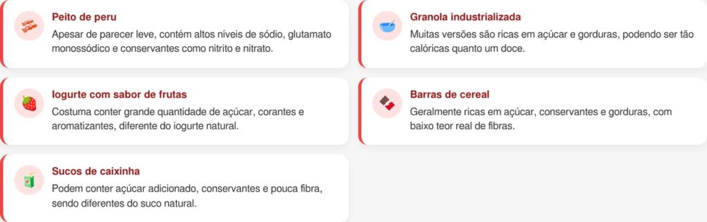 Na busca por uma alimentação mais equilibrada, muitas pessoas acabam incluindo no cardápio produtos que parecem saudáveis, mas que escondem excesso de açúcar, sódio, gorduras ruins e aditivos químicos. Embalagens com palavras como “integral”, “light”, “fitness” ou “natural” criam uma falsa sensação de segurança que pode sabotar a dieta sem que você perceba. Saber identificar esses alimentos é o primeiro passo para fazer escolhas realmente conscientes.