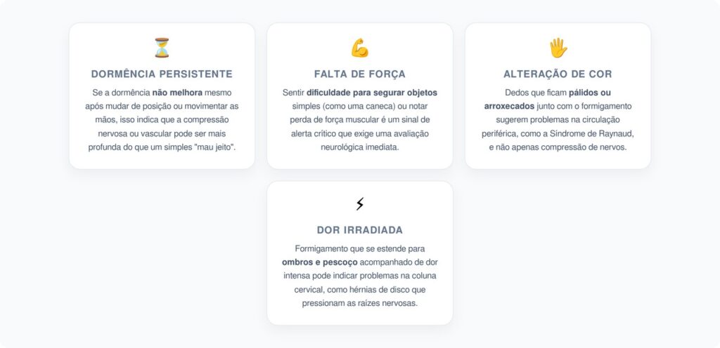 Nem todo formigamento ao acordar exige preocupação imediata, mas existem sinais que indicam a necessidade de procurar um profissional de saúde. Fique atento se você notar: