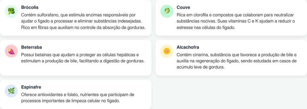 O fígado é responsável por processar tudo o que você come e bebe, além de filtrar substâncias que o corpo não precisa. Alguns vegetais contêm compostos naturais que favorecem esse trabalho, ajudando a proteger as células do órgão e a evitar o acúmulo de gordura. Embora nenhum alimento isolado seja capaz de “desintoxicar” o fígado, incluir essas opções no dia a dia, dentro de uma alimentação equilibrada, pode fazer diferença real na sua saúde hepática.