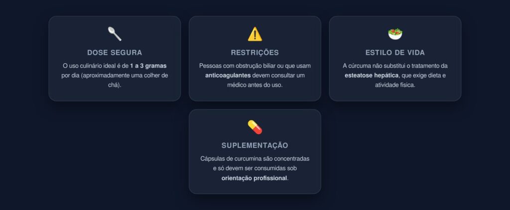 Apesar dos benefícios comprovados, o uso da cúrcuma exige alguns cuidados para ser seguro e eficaz: