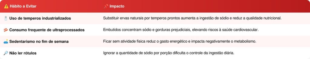 Além da alimentação, o sedentarismo é outro vilão silencioso. Mesmo quem se exercita durante a semana pode prejudicar o coração ao ficar completamente parado nos fins de semana. Os principais hábitos que merecem atenção nesse sentido são: