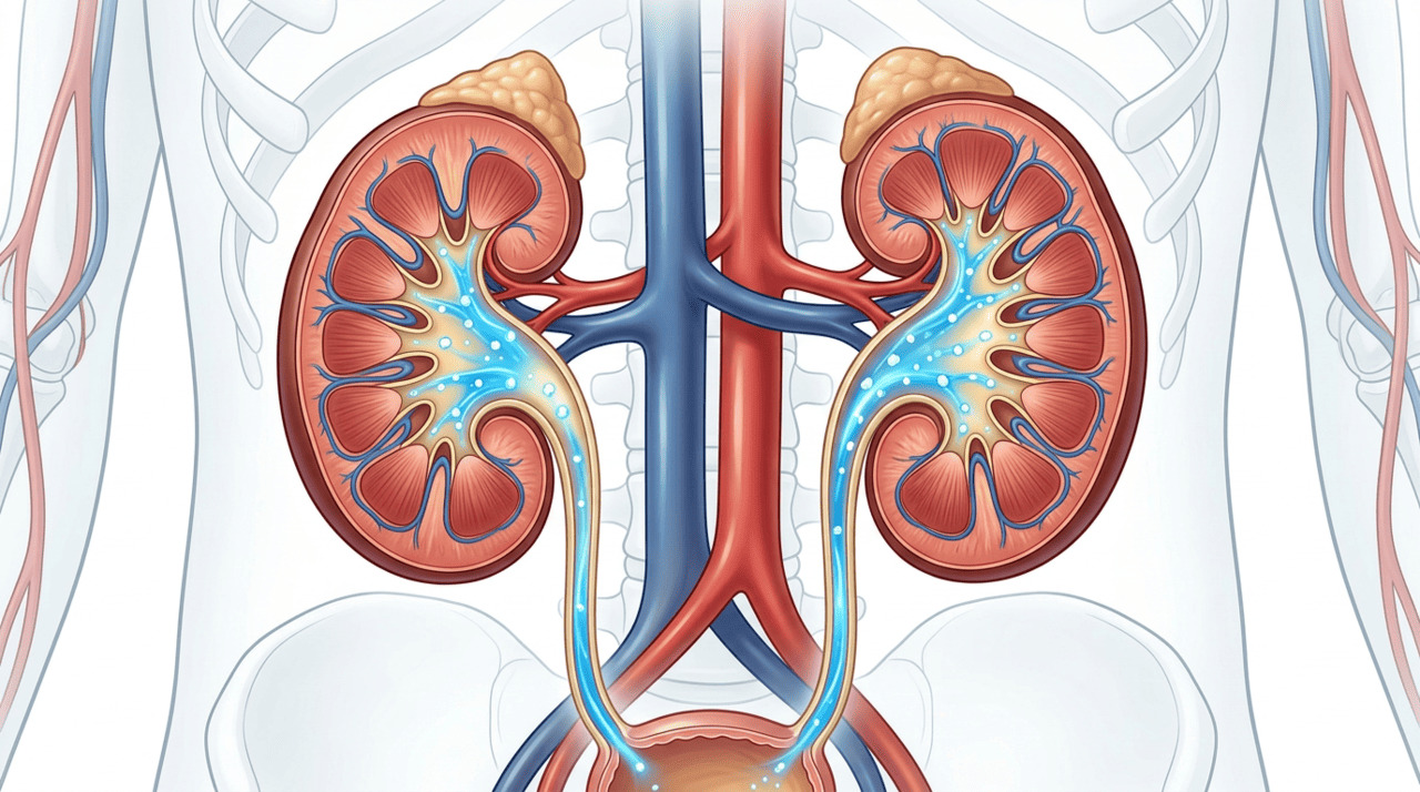 Os cálculos renais se formam quando substâncias como cálcio, oxalato e ácido úrico ficam concentradas na urina ao ponto de se cristalizarem. A água atua como o principal solvente do corpo, diluindo essas substâncias e impedindo que atinjam o nível de saturação necessário para criar cristais. Além disso, o fluxo contínuo de urina ajuda a expelir microcristais antes que eles cresçam e se tornem um problema.