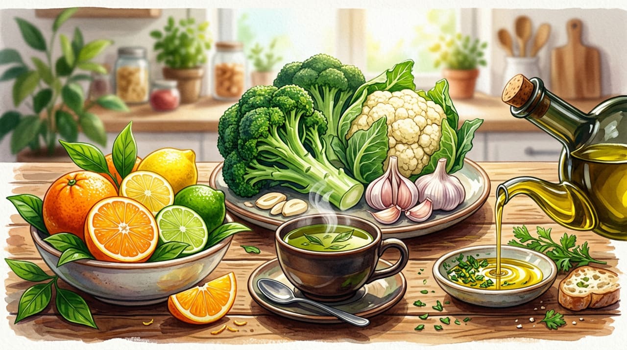 A relação entre o consumo desses cinco grupos de alimentos e a proteção hepática é sustentada por evidências científicas sólidas. Segundo a revisão “Plants Consumption and Liver Health”, publicada na revista Evidence-Based Complementary and Alternative Medicine e indexada no PubMed Central, vegetais crucíferos, frutas cítricas e espécies do gênero Allium (como o alho) possuem efeitos protetores documentados contra diversas doenças do fígado, incluindo esteatose, fibrose, hepatite e câncer hepático. A revisão também destaca que o chá verde e o azeite de oliva atuam através de suas propriedades antioxidantes e anti-inflamatórias, neutralizando substâncias prejudiciais e reduzindo danos nas células do fígado.
