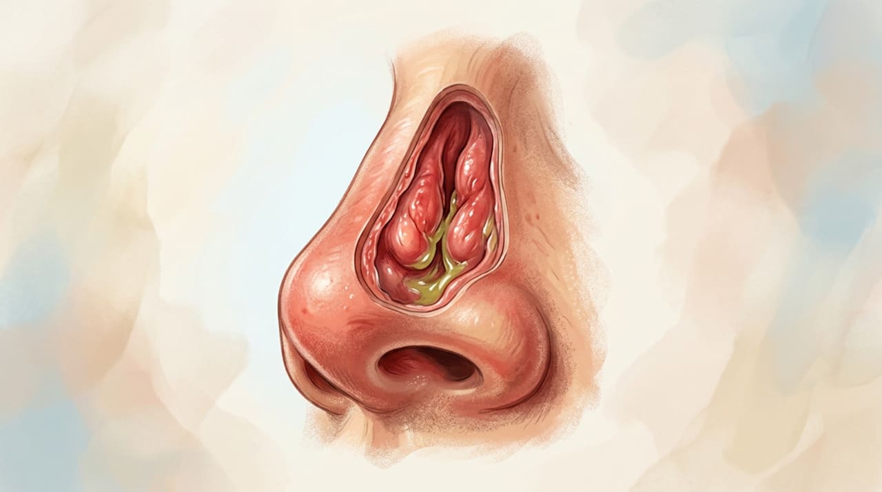 - Secreção nasal esverdeada ou amarelada com odor forte