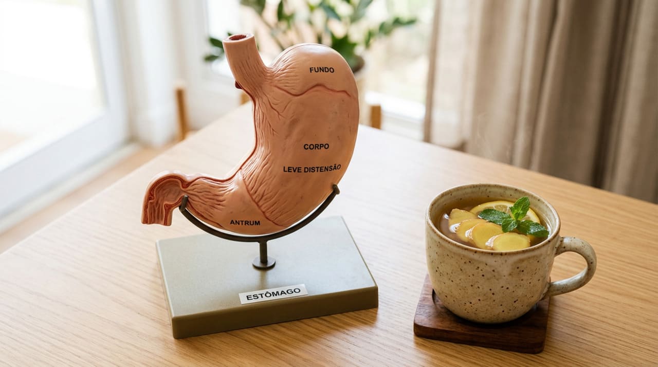 O uso do gengibre para problemas digestivos não é apenas uma tradição popular. Segundo a revisão narrativa “The Effect of Ginger Supplementation on the Improvement of Dyspeptic Symptoms in Patients With Functional Dyspepsia”, publicada no periódico Cureus em 2023 e indexada no PubMed, a suplementação com gengibre demonstrou redução significativa dos sintomas de dispepsia funcional em comparação ao placebo em diversos ensaios clínicos randomizados. Os autores destacaram que o gengibre estimula a motilidade gástrica e acelera o esvaziamento do estômago, aliviando a sensação de empachamento e desconforto após as refeições. A pesquisa completa pode ser consultada em: PubMed – Cureus 2023.