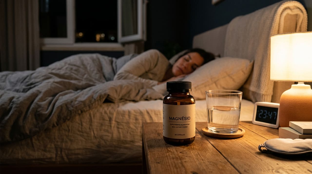 Quando os níveis de magnésio estão abaixo do ideal, o sistema nervoso permanece em estado de alerta elevado, o que dificulta o adormecer e aumenta os despertares durante a noite. Estudos com idosos mostraram que a suplementação ajudou os participantes a adormecer mais rápido e a ter um sono mais restaurador ao longo das semanas de uso.