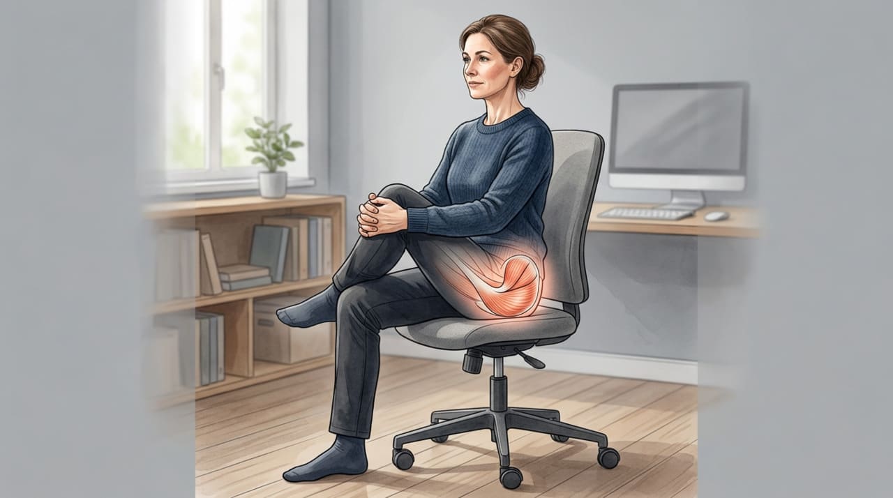 Permanecer sentado por longas horas no trabalho é um dos principais fatores de risco para o desenvolvimento da Síndrome do Piriforme, uma condição em que o músculo localizado na parte profunda do glúteo comprime o nervo ciático e provoca dor, formigamento e rigidez. A boa notícia é que um alongamento simples, que pode ser feito na própria cadeira do escritório em menos de dois minutos, ajuda a aliviar a tensão acumulada no piriforme ao longo do dia e a prevenir o aparecimento dos sintomas antes que eles se instalem.