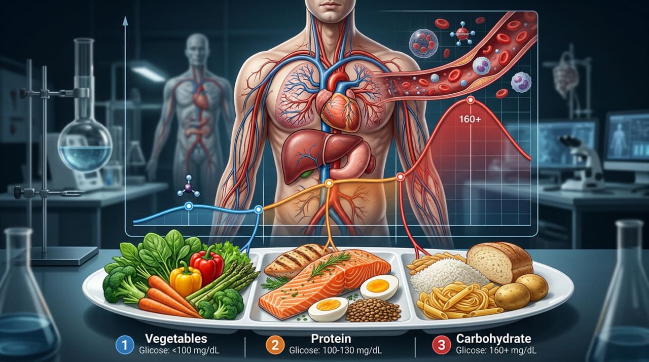 Você não precisa cortar alimentos do prato para controlar o açúcar no sangue. A ciência mostra que mudar apenas a ordem em que os alimentos são consumidos durante a refeição pode reduzir os picos de glicose de forma expressiva, sem alterar a quantidade nem os ingredientes do que você come. O segredo é simples: começar pelas fibras e proteínas e deixar o carboidrato para o final.