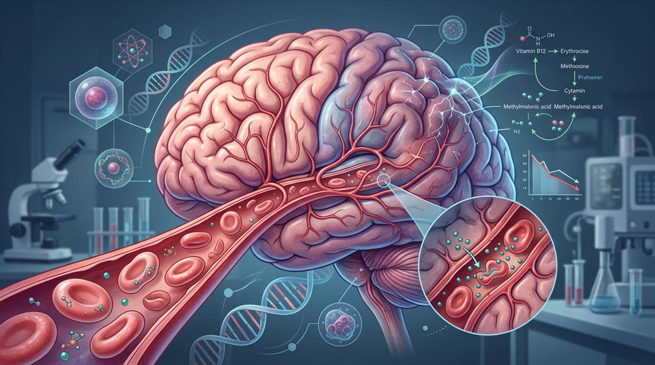 A vitamina B12, também chamada de cobalamina, participa de processos essenciais para que o cérebro funcione com clareza. Ela é necessária para a formação dos glóbulos vermelhos, as células do sangue responsáveis por levar oxigênio a todos os tecidos do corpo, incluindo o cérebro. Quando os níveis de B12 estão baixos, a produção dessas células cai e menos oxigênio chega ao sistema nervoso.