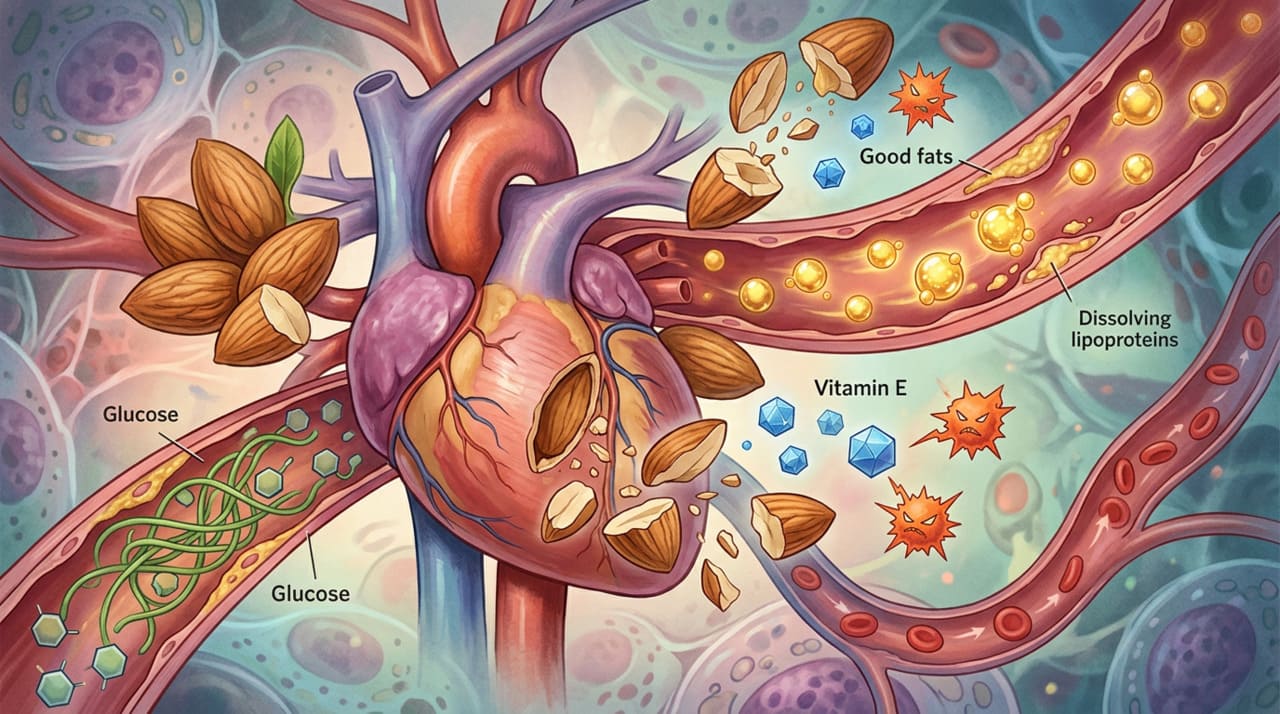 As amêndoas são ricas em gorduras monoinsaturadas e poli-insaturadas, que ajudam a reduzir os níveis de colesterol total e do colesterol considerado prejudicial. Essa redução diminui o acúmulo de gordura nas paredes das artérias, um dos principais fatores de risco para infartos e derrames. Além disso, o magnésio presente nas amêndoas contribui para o bom funcionamento dos vasos sanguíneos e para o equilíbrio da pressão arterial.
