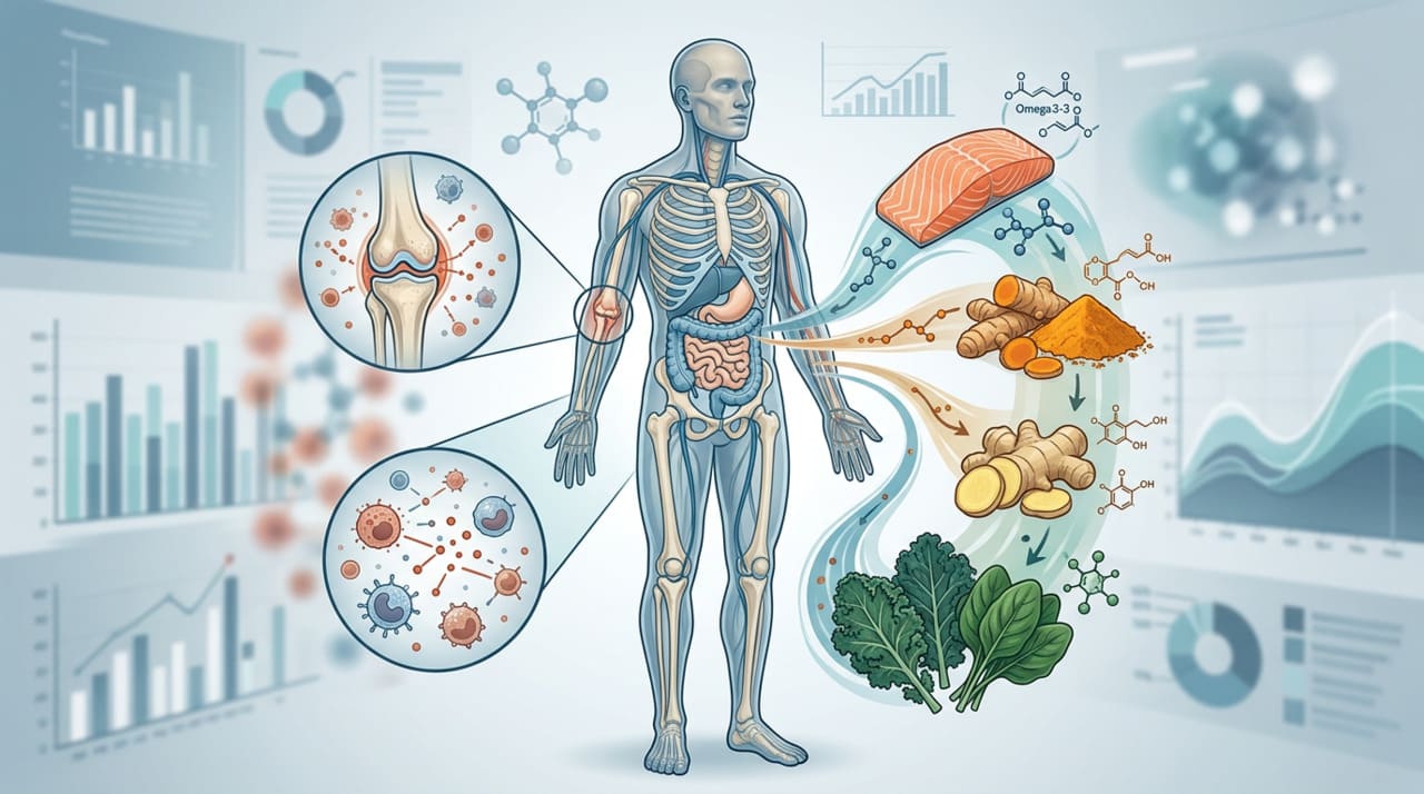 A relação entre alimentação e inflamação silenciosa já foi amplamente estudada e confirmada pela ciência. Segundo a revisão “Visão geral das dietas anti-inflamatórias e seus efeitos promissores em doenças não transmissíveis“, publicada no periódico British Journal of Nutrition e indexada no PubMed Central, dietas ricas em frutas, vegetais, peixes, azeite e especiarias como cúrcuma e gengibre promovem a redução dos marcadores inflamatórios no sangue e estão associadas a menor risco de doenças crônicas. A revisão destaca que os compostos presentes nessas especiarias inibem vias inflamatórias importantes e reduzem substâncias como proteína C-reativa e interleucina-6, reforçando que uma alimentação baseada em alimentos naturais e anti-inflamatórios é uma das formas mais eficazes de prevenir o avanço silencioso da inflamação.