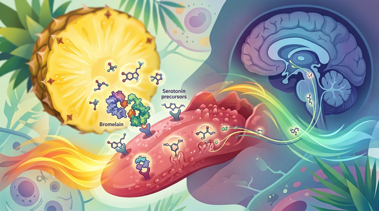 A bromelina é uma enzima proteolítica presente no abacaxi, ou seja, ela quebra proteínas. Quando você come abacaxi fresco, a bromelina começa a agir sobre as proteínas da mucosa da boca e da língua, causando uma leve sensação de formigamento ou picor. Essa sensação, longe de ser prejudicial, é o que torna o abacaxi tão eficaz contra os desejos de doce.