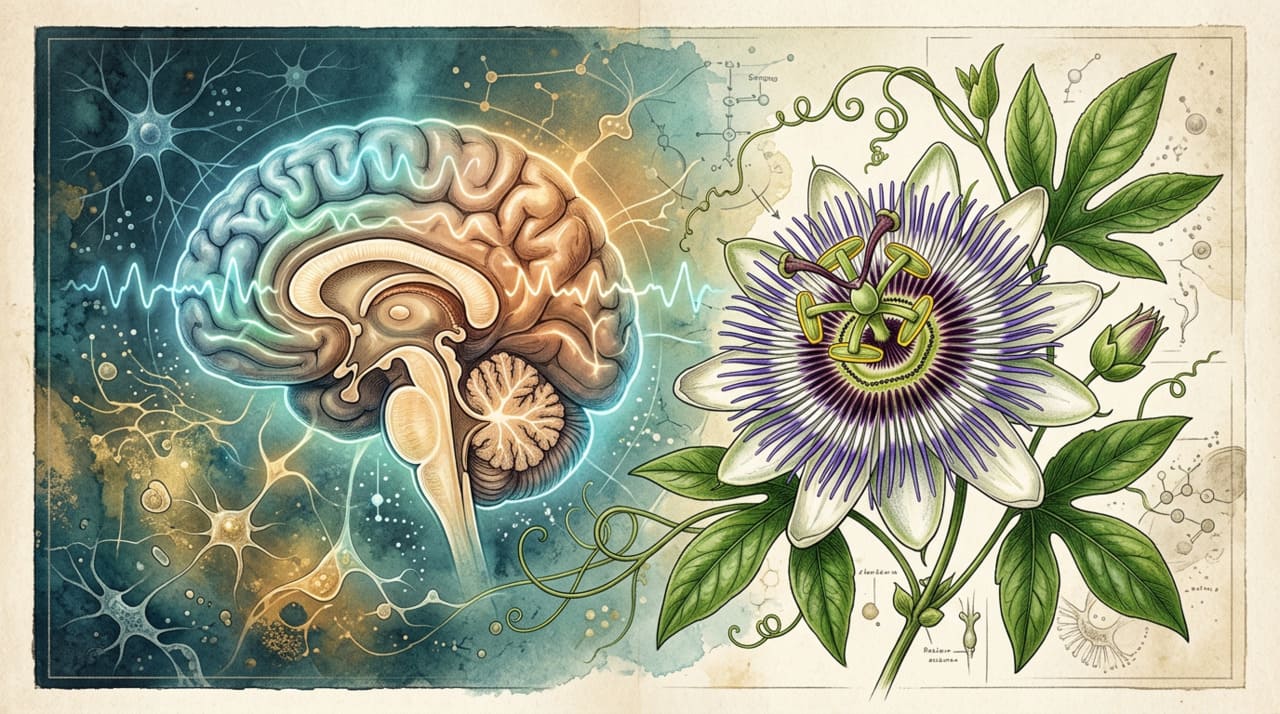 Os compostos presentes nas folhas e nas partes aéreas da passiflora, como flavonoides e alcaloides, atuam diretamente sobre os receptores do cérebro responsáveis pelo relaxamento. Essa ação favorece a produção de substâncias calmantes naturais no sistema nervoso, reduzindo a agitação mental e facilitando o início e a manutenção do sono. Diferentemente de muitos calmantes sintéticos, a passiflora não costuma provocar sonolência excessiva no dia seguinte.