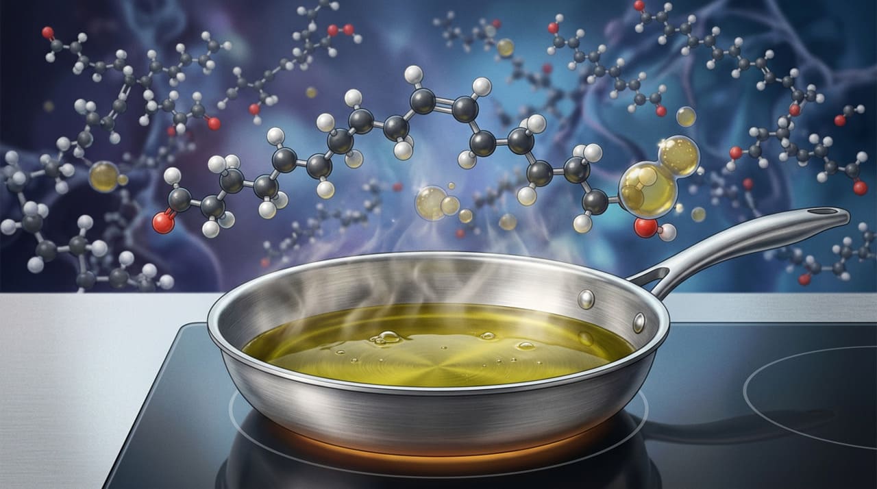 A evidência mais robusta sobre a segurança do azeite no calor veio de um estudo comparativo publicado em 2018. Segundo a pesquisa “Evaluation of Chemical and Physical Changes in Different Commercial Oils During Heating”, publicada na revista Acta Scientific Nutritional Health por De Alzaa, Guillaume e Ravetti, o azeite extra virgem produziu os menores níveis de compostos polares e subprodutos de oxidação entre dez óleos comerciais testados, inclusive quando aquecido a 240°C e mantido a 180°C por seis horas. O estudo concluiu que o ponto de fumaça não é um indicador confiável de segurança, e que a estabilidade oxidativa e o teor de antioxidantes são critérios muito mais relevantes. Acesse o estudo completo em: Evaluation of Chemical and Physical Changes in Different Commercial Oils During Heating — Acta Scientific.