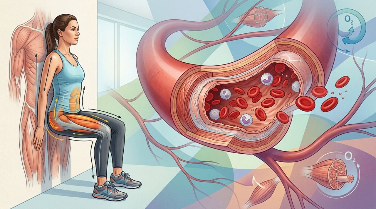 O mecanismo por trás do efeito na pressão envolve uma resposta vascular específica. Durante a contração estática, os vasos sanguíneos que irrigam os músculos são comprimidos, reduzindo temporariamente o fluxo de sangue. Quando o exercício termina e o músculo relaxa, ocorre um grande fluxo de sangue pelos vasos. Essa alternância entre compressão e liberação estimula a produção de óxido nítrico e melhora a capacidade dos vasos de se dilatarem, o que reduz a resistência vascular e, consequentemente, a pressão arterial de repouso ao longo do tempo.