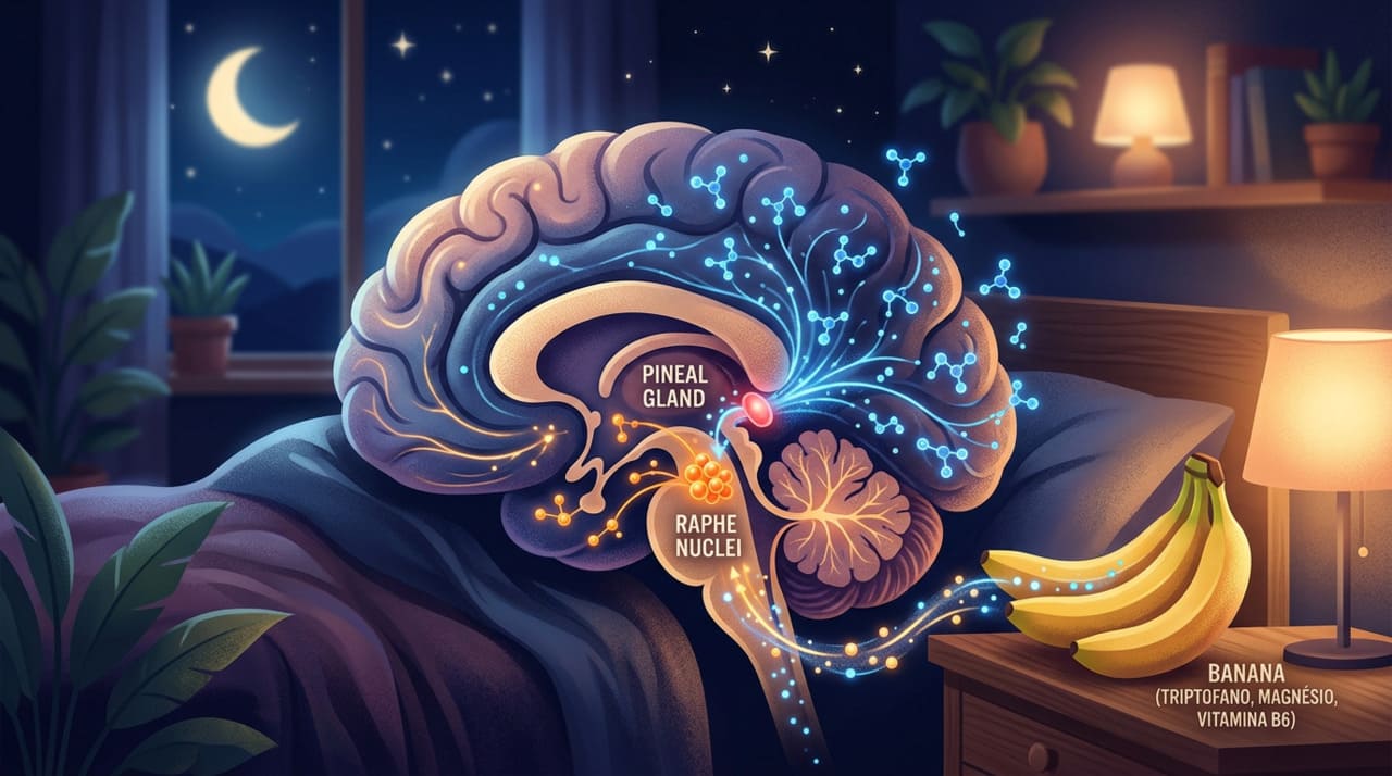 A banana oferece justamente essa combinação natural de triptofano e açúcares. Por isso, ao ser consumida antes de deitar, ela cria condições favoráveis para que o organismo produza os hormônios necessários para adormecer com mais facilidade.