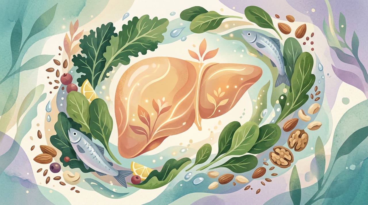 Ômega-3, zinco e selênio apoiam a regeneração e saúde hepática.