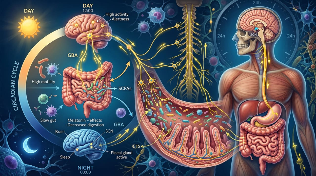 O intestino possui um relógio biológico próprio que organiza quando os nutrientes são absorvidos com maior eficiência e como as bactérias intestinais produzem substâncias que influenciam diretamente o humor e o bem-estar emocional. Esse sistema interno faz com que a capacidade do intestino de processar alimentos e de se comunicar com o cérebro varie ao longo do dia, seguindo um ritmo de aproximadamente 24 horas. Entender como esse mecanismo funciona pode ajudar a fazer escolhas alimentares mais inteligentes e a cuidar tanto da saúde digestiva quanto da saúde mental.