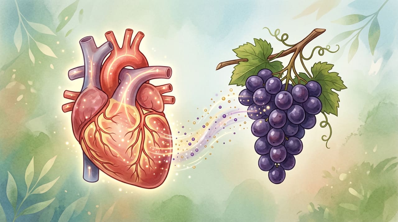 O resveratrol é um polifenol encontrado principalmente na casca da uva roxa que age combatendo o estresse oxidativo, promovendo o relaxamento dos vasos sanguíneos e inibindo a formação de coágulos.