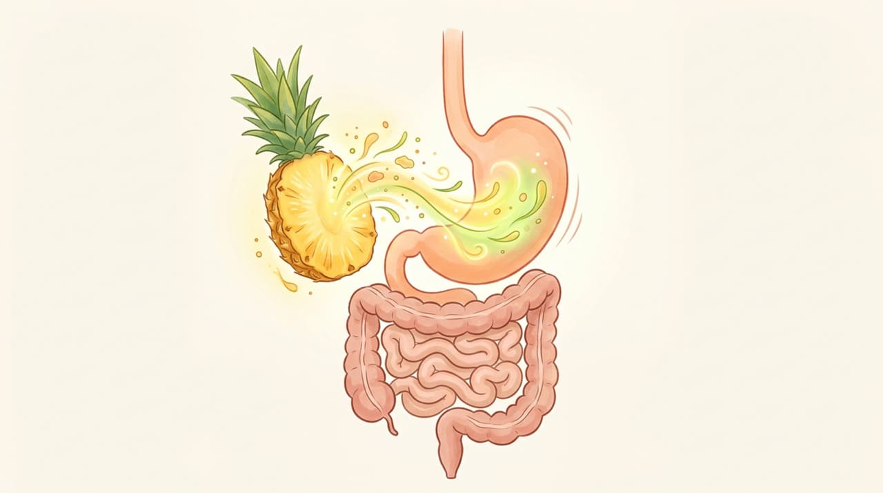 A bromelina age diretamente na quebra de moléculas grandes de proteína, trabalhando em conjunto com enzimas naturais do corpo como a tripsina e a pepsina. Esse mecanismo torna a digestão mais rápida e eficiente, especialmente após refeições ricas em carnes.