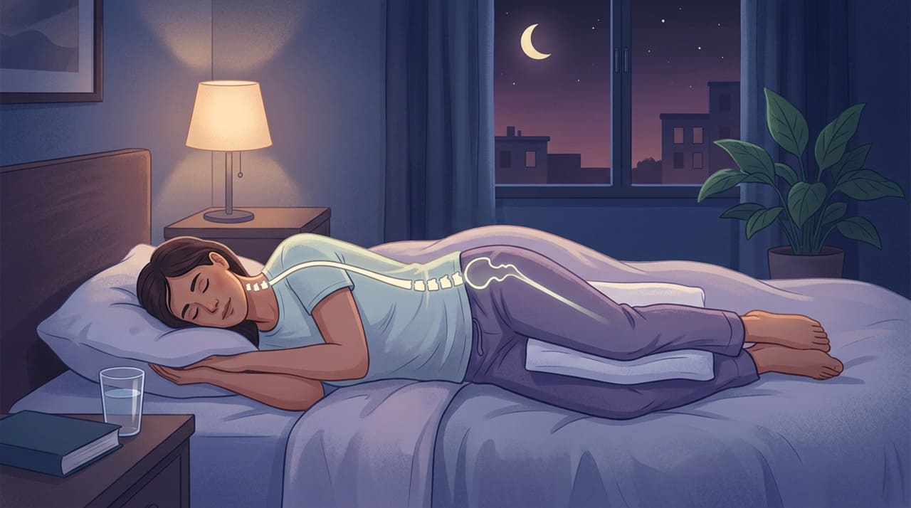 Dormir de lado com um travesseiro entre os joelhos é considerada a posição mais protetora para a coluna lombar, porque mantém o quadril e a pelve alinhados, evitando a torção durante a noite. Essa postura também favorece a respiração e reduz episódios de ronco.