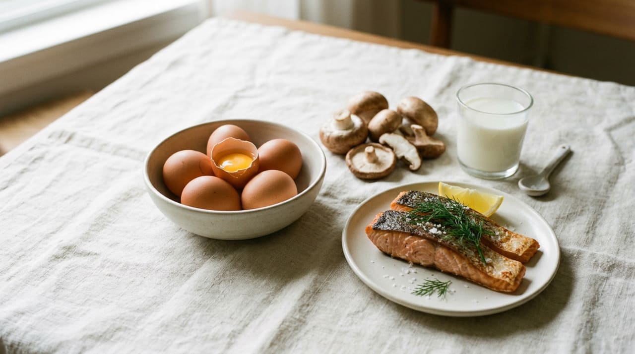 Embora a exposição solar seja a principal fonte, cerca de 20% das necessidades diárias podem ser alcançadas pela alimentação equilibrada. Incluir fontes naturais desse nutriente no cardápio é uma estratégia complementar importante, especialmente para quem passa a maior parte do tempo em ambientes fechados.