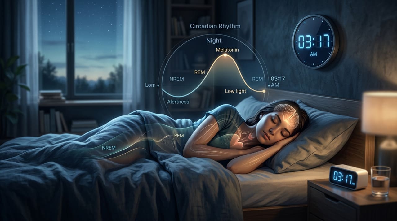 O sono é organizado em ciclos de aproximadamente 90 minutos que se repetem durante a noite, alternando fases leves, profundas e o sono REM. Na segunda metade da noite, o sono se torna naturalmente mais leve, tornando o corpo mais suscetível a despertares breves.