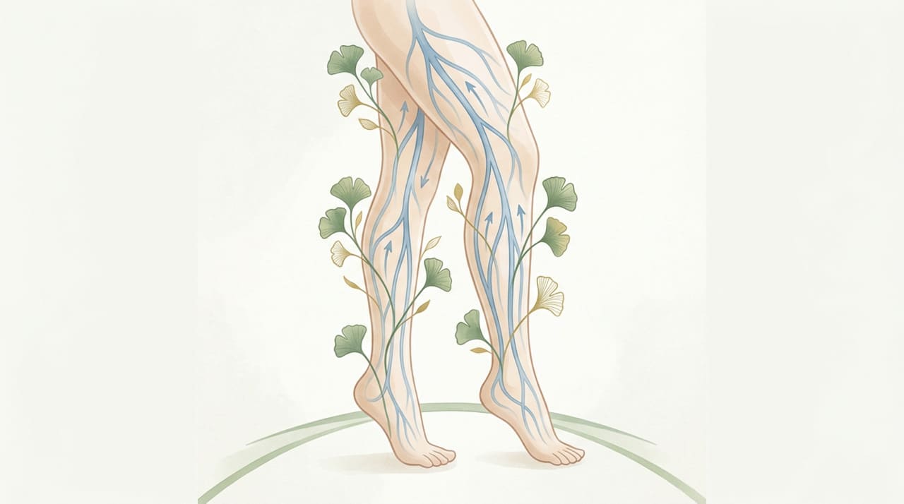 O ginkgo biloba atua dilatando os vasos sanguíneos, fortalecendo as paredes das veias e reduzindo a pressão venosa. Seus compostos antioxidantes também ajudam a diminuir o inchaço e a sensação de peso nas pernas.