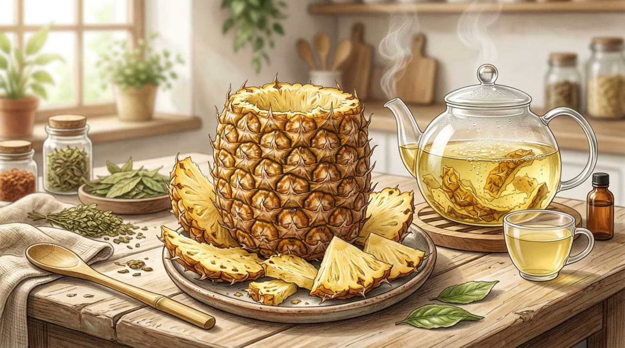 O chá de casca de abacaxi concentra bromelina, uma enzima natural com poderosas propriedades digestivas e anti-inflamatórias, além de vitaminas e antioxidantes que favorecem a saúde do corpo. Essa bebida simples e econômica aproveita uma parte da fruta que normalmente seria descartada, entregando benefícios que vão desde o alívio do inchaço abdominal até o suporte ao sistema imunológico. Descubra o que a ciência revela sobre essa infusão tropical e como prepará-la corretamente para extrair todas as suas propriedades curativas.