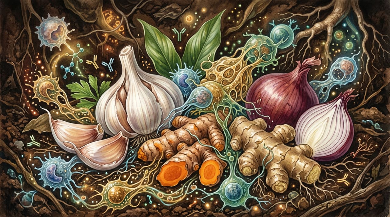 O sistema imunológico funciona melhor quando o corpo está livre de inflamações crônicas e recebe nutrientes que favorecem a produção de células de defesa. Temperos como o alho contêm compostos como a alicina, que possui ação antimicrobiana e estimula a produção de glóbulos brancos. A cúrcuma, rica em curcumina, atua reduzindo processos inflamatórios e protegendo as células contra danos oxidativos.