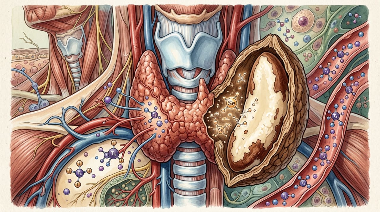 Além disso, o selênio integra as defesas naturais que protegem a própria tireoide contra danos causados durante a produção dos hormônios. A síntese hormonal gera substâncias que podem danificar as células da glândula, e as enzimas dependentes de selênio são responsáveis por neutralizar esses compostos.