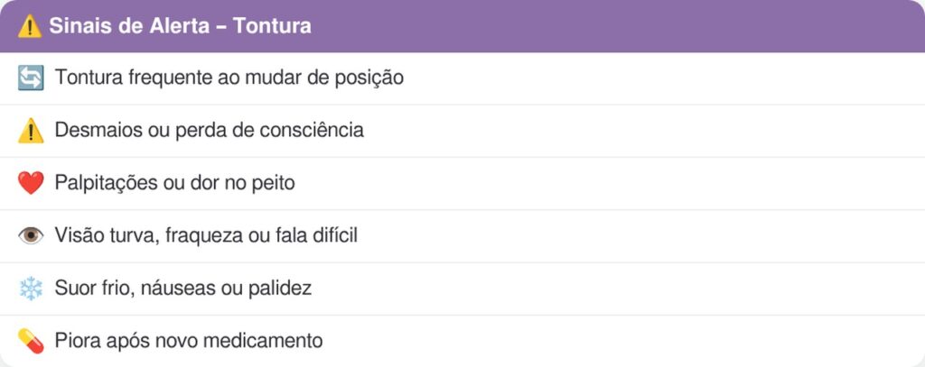 O cenário muda quando a tontura aparece quase todos os dias, em várias mudanças de posição, ou vem acompanhada de desmaios, palpitações e visão turva intensa. Nesses casos, a avaliação médica é importante.