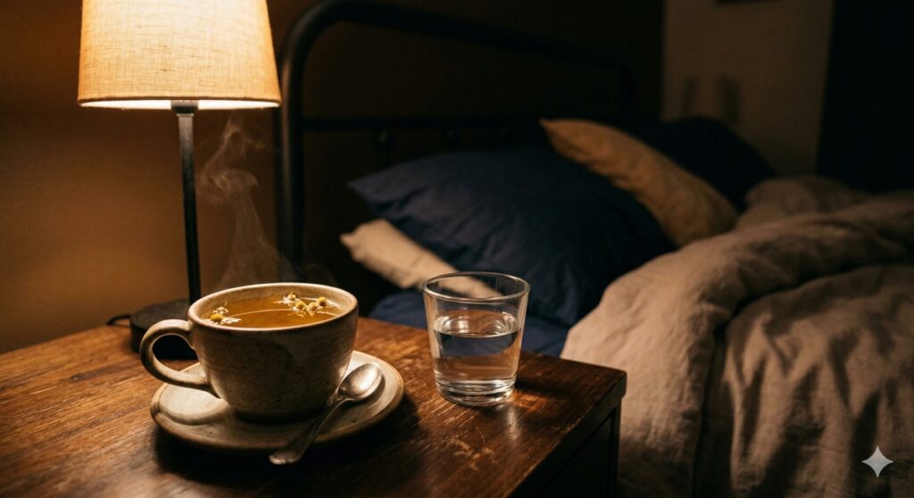 A melhor escolha para antes de deitar é um pequeno gole de água pura ou uma xícara de chá de camomila morno. O chá de camomila se destaca porque não tem efeito diurético marcante, ajuda a relaxar o sistema nervoso e favorece o início do sono, sem estimular a bexiga como outras bebidas noturnas.