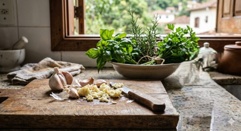 A maneira de preparar o alho influencia diretamente a quantidade de compostos ativos disponíveis. Picar ou amassar o dente e deixá-lo descansar por cerca de dez minutos antes de usar ajuda a ativar a alicina, que é sensível ao calor e pode ser reduzida em preparos longos no fogo.