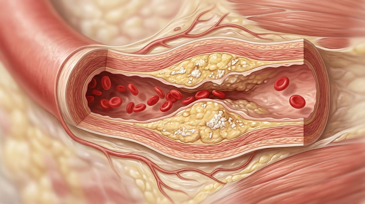 Esse acúmulo silencioso endurece as artérias, reduz a elasticidade e aumenta o risco de eventos graves como infarto e acidente vascular cerebral, especialmente em pessoas acima dos 50 anos.