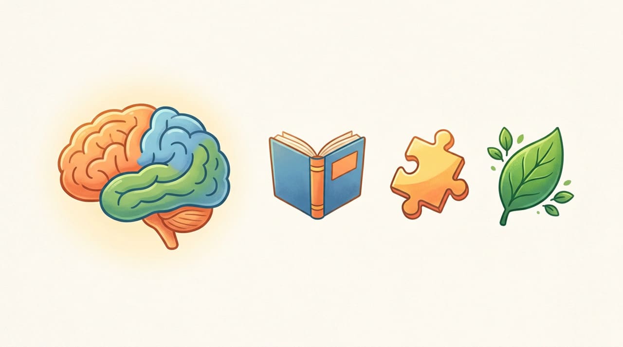 A neurociência identifica quatro pilares com maior evidência de benefício para a saúde cerebral após os 50. Combinados, eles criam um ambiente protetor contra o declínio cognitivo: