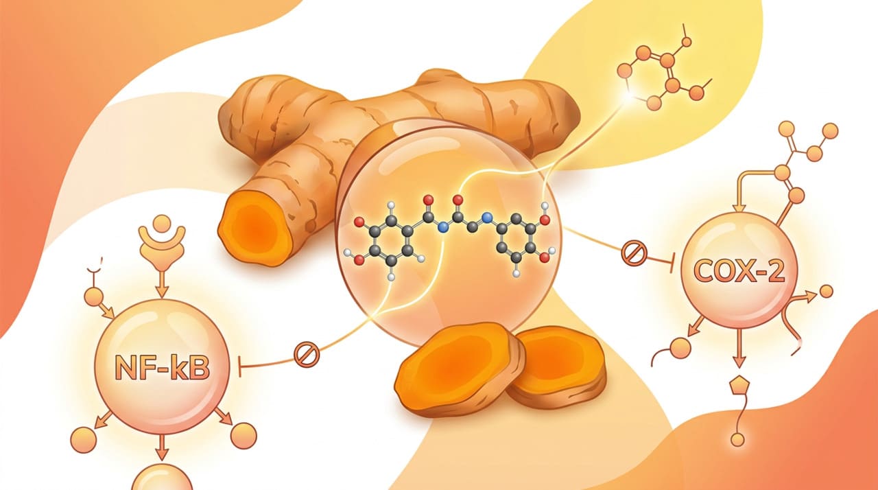 Além disso, a curcumina bloqueia a atividade da enzima COX-2, o mesmo alvo de anti-inflamatórios convencionais como o ibuprofeno. A diferença é que a curcumina atua de forma mais suave e com menor risco de efeitos colaterais no estômago e nos rins, embora com potência mais moderada.