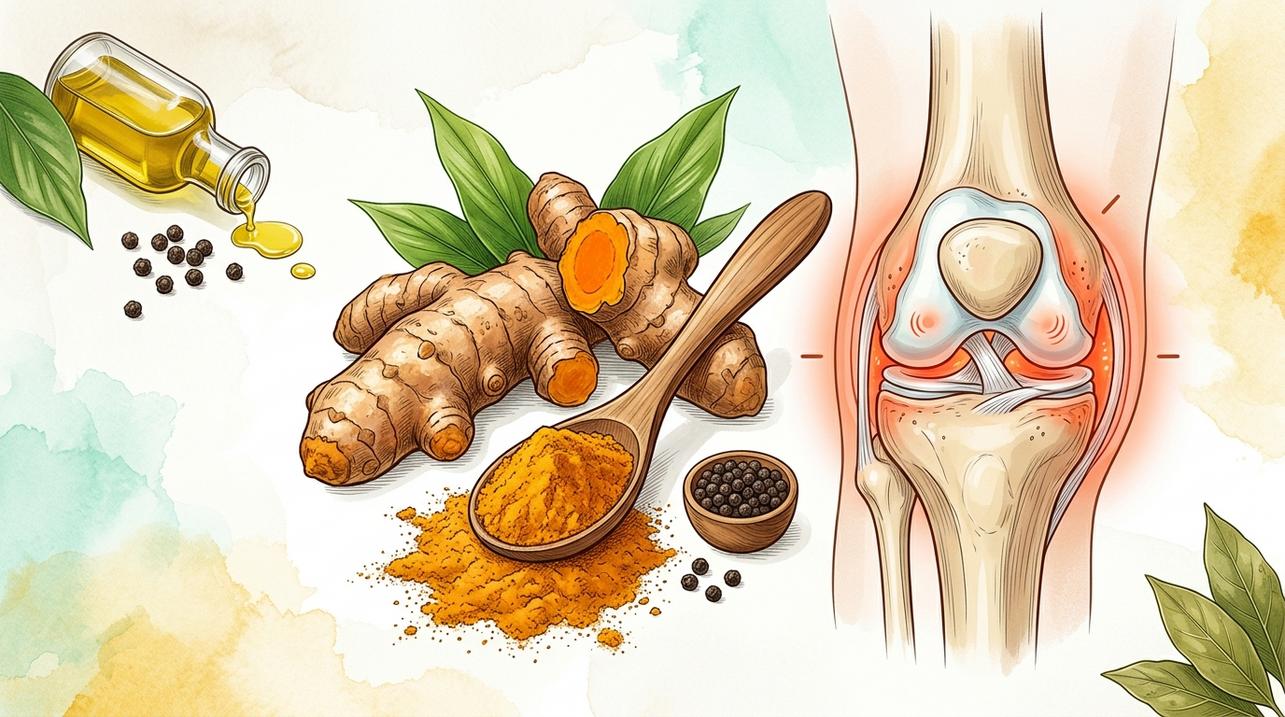 A cúrcuma em pó usada na comida pode entrar na rotina, mas costuma fornecer menos curcumina do que extratos padronizados. Para quem busca um anti-inflamatório natural com foco em dor nas juntas, isso importa porque a curcumina tem baixa absorção intestinal e depende da formulação para circular melhor no organismo.