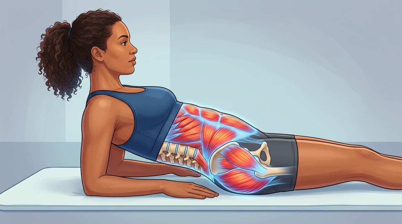 O quadril é frequentemente o grande responsável por dores lombares que parecem não ter explicação. O glúteo médio, em particular, é o principal estabilizador lateral da pelve. Quando está fraco, a pelve tende a oscilar durante a caminhada, forçando o quadrado lombar a contrair-se excessivamente para compensar. Esse mecanismo gera tensão crônica na região lombar, mesmo sem nenhuma lesão estrutural na coluna.