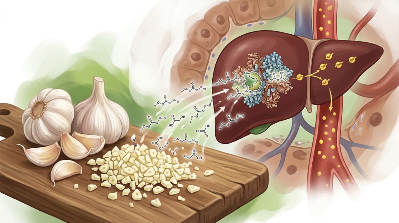 A alicina age inibindo a enzima HMG-CoA redutase no fígado, a mesma enzima bloqueada pelos medicamentos da classe das estatinas. Essa inibição reduz a produção hepática de colesterol, resultando em menores níveis de colesterol total e LDL circulantes. Além disso, outros compostos organossulfurados do alho protegem as partículas de LDL contra a oxidação, um processo diretamente ligado à formação de placas nas artérias e ao desenvolvimento da aterosclerose.