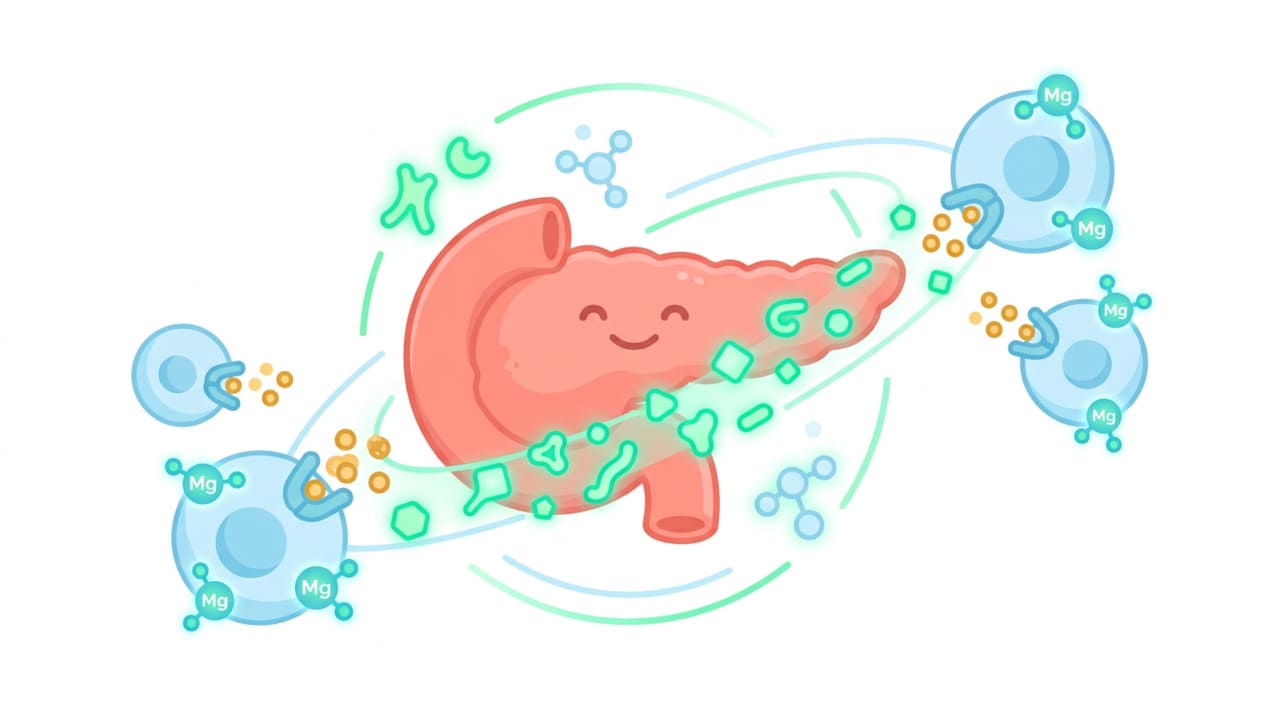 O magnésio participa de mais de 300 reações enzimáticas no organismo, incluindo a sinalização da insulina e o metabolismo da glicose. Sua deficiência está diretamente associada à resistência à insulina e ao maior risco de diabetes tipo 2.