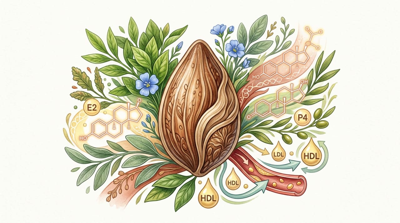 A linhaça é uma das maiores fontes vegetais de lignanas, compostos com ação fitoestrogênica que ajudam a equilibrar os níveis de estrogênio no organismo. Ela também é rica em ácido alfa-linolênico, um ômega 3 vegetal, e em fibras solúveis e insolúveis.