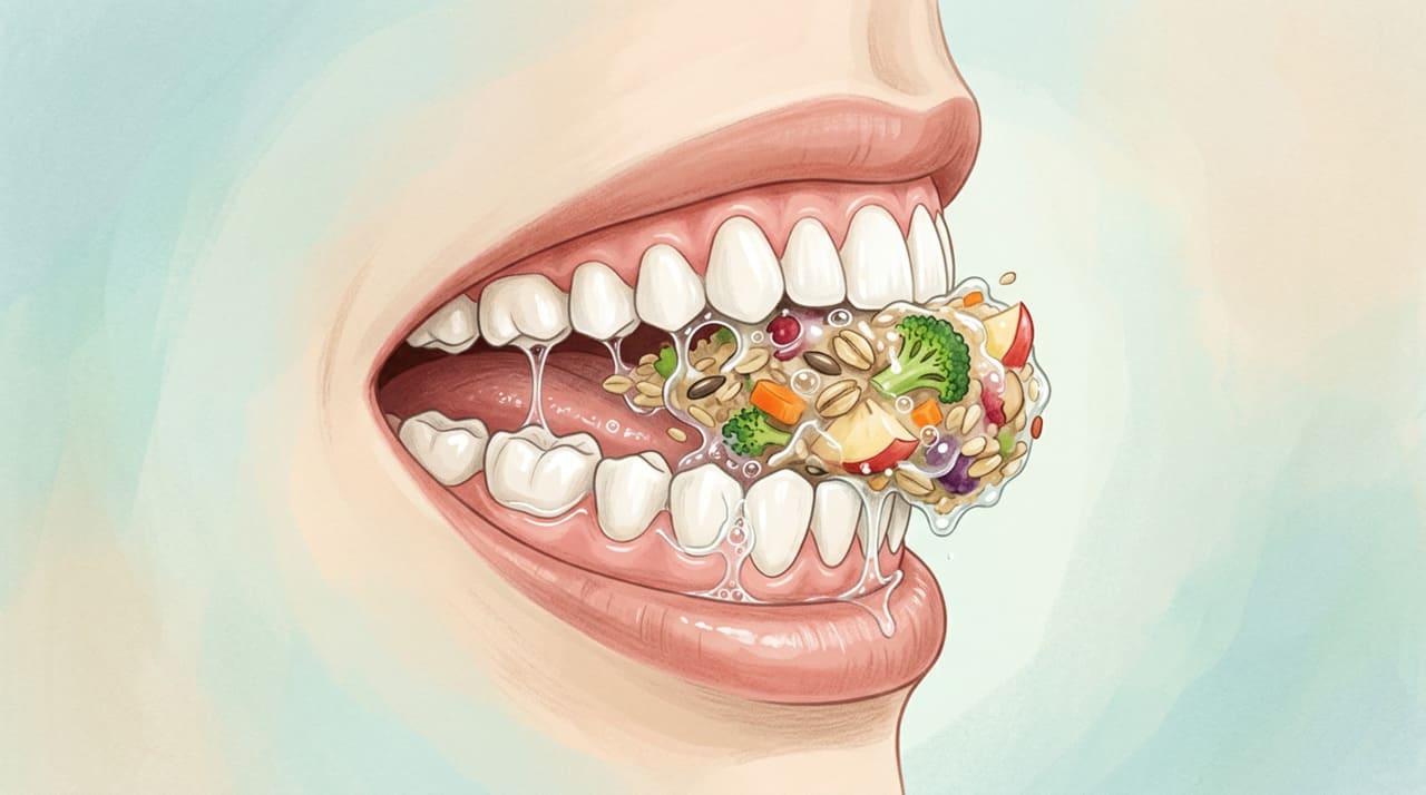 A digestão começa na boca, não no estômago. Ao mastigar, os dentes quebram fisicamente os alimentos enquanto a saliva libera enzimas como a amilase, que inicia a quebra dos carboidratos. Esse processo aumenta a superfície de contato dos nutrientes com as enzimas digestivas.
