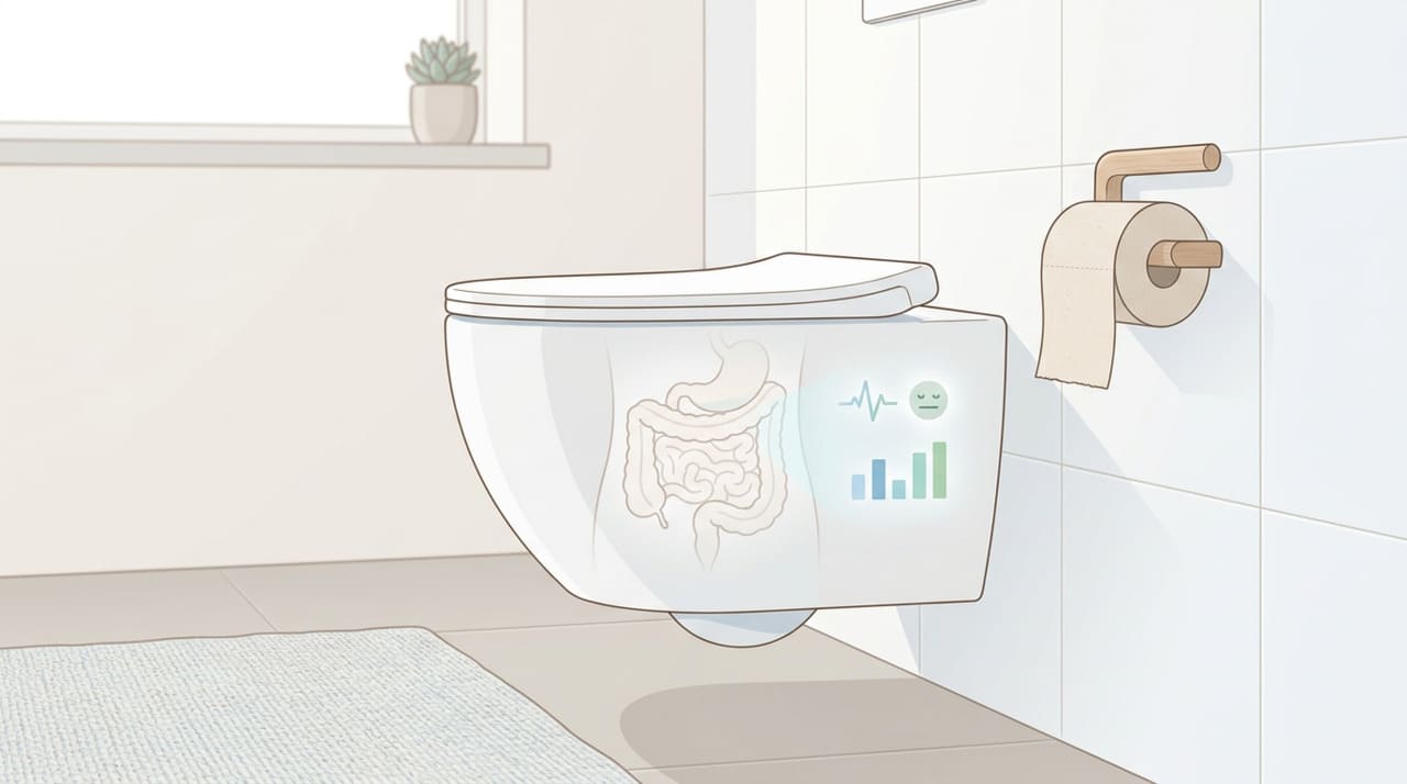 Ambiente de banheiro que remete à observação das fezes como indicador de saúde