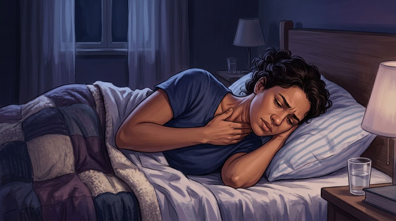 Refluxo silencioso pode causar ardência na garganta à noite.