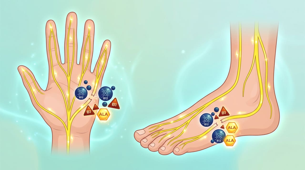 O formigamento frequente nas mãos e nos pés pode ser o primeiro sinal de que algo está comprometendo os nervos periféricos. Vitaminas como B12, B1 e o ácido alfa-lipoico atuam diretamente na condução nervosa e na regeneração axonal, podendo aliviar os sintomas e prevenir danos permanentes quando a deficiência é identificada precocemente, segundo estudos em neurologia clínica.