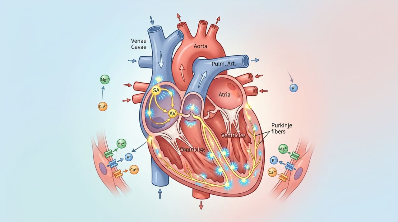 Manter o coração saudável vai além de controlar o colesterol e praticar atividade física. Minerais como magnésio, potássio e cálcio atuam diretamente na condução elétrica cardíaca e na regulação da pressão arterial, sendo essenciais para o ritmo cardíaco equilibrado e para a prevenção de doenças cardiovasculares, segundo estudos de cardiologia e nutrição clínica.