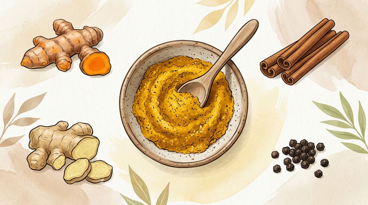 Uma mistura caseira feita com cúrcuma, canela, gengibre, pimenta-do-reino e óleo de coco vem ganhando espaço como alternativa alimentar para modular processos inflamatórios. A combinação reúne especiarias com propriedades antioxidantes e digestivas, e estudos científicos apontam que pode contribuir para o equilíbrio metabólico quando associada a uma dieta variada e hábitos saudáveis.