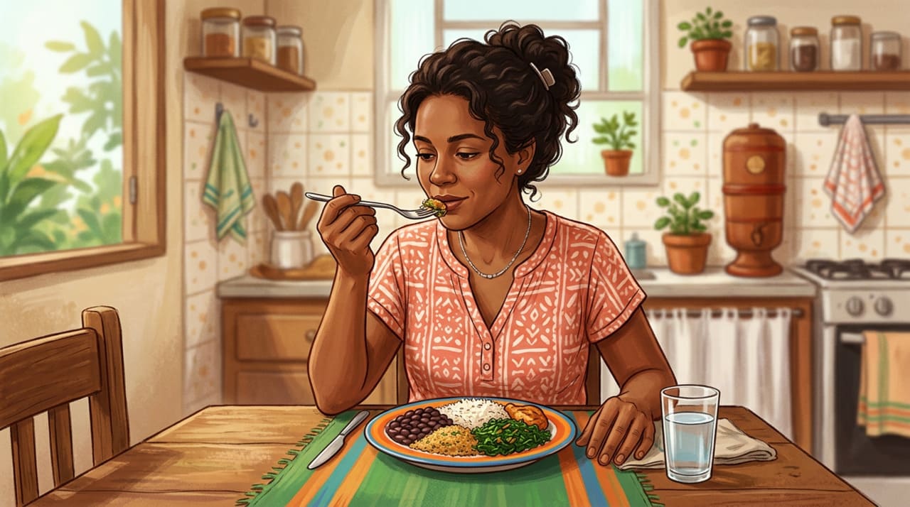 Mastigar devagar facilita a digestão e melhora o aproveitamento dos nutrientes.