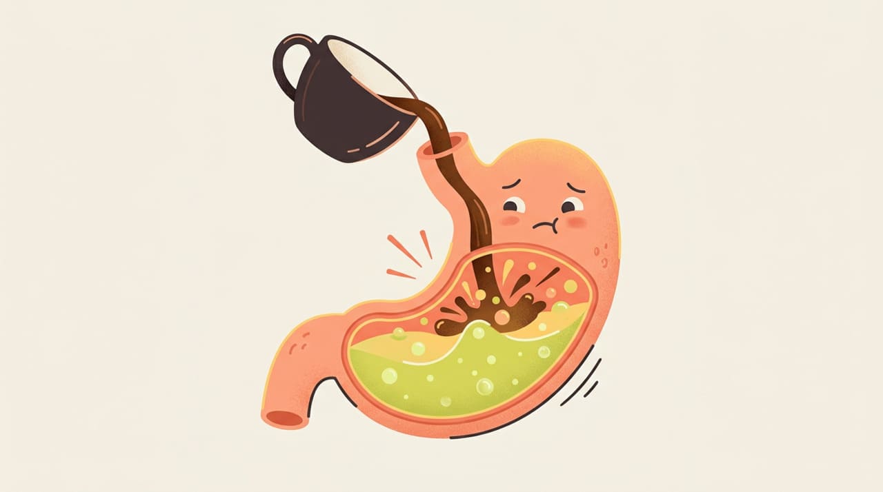 O café estimula a produção de ácido clorídrico, mesmo na ausência de alimentos. Esse aumento da acidez ajuda na digestão quando há comida no estômago, mas pode irritar a mucosa quando ela está vazia, especialmente em pessoas sensíveis ou com problemas digestivos prévios.